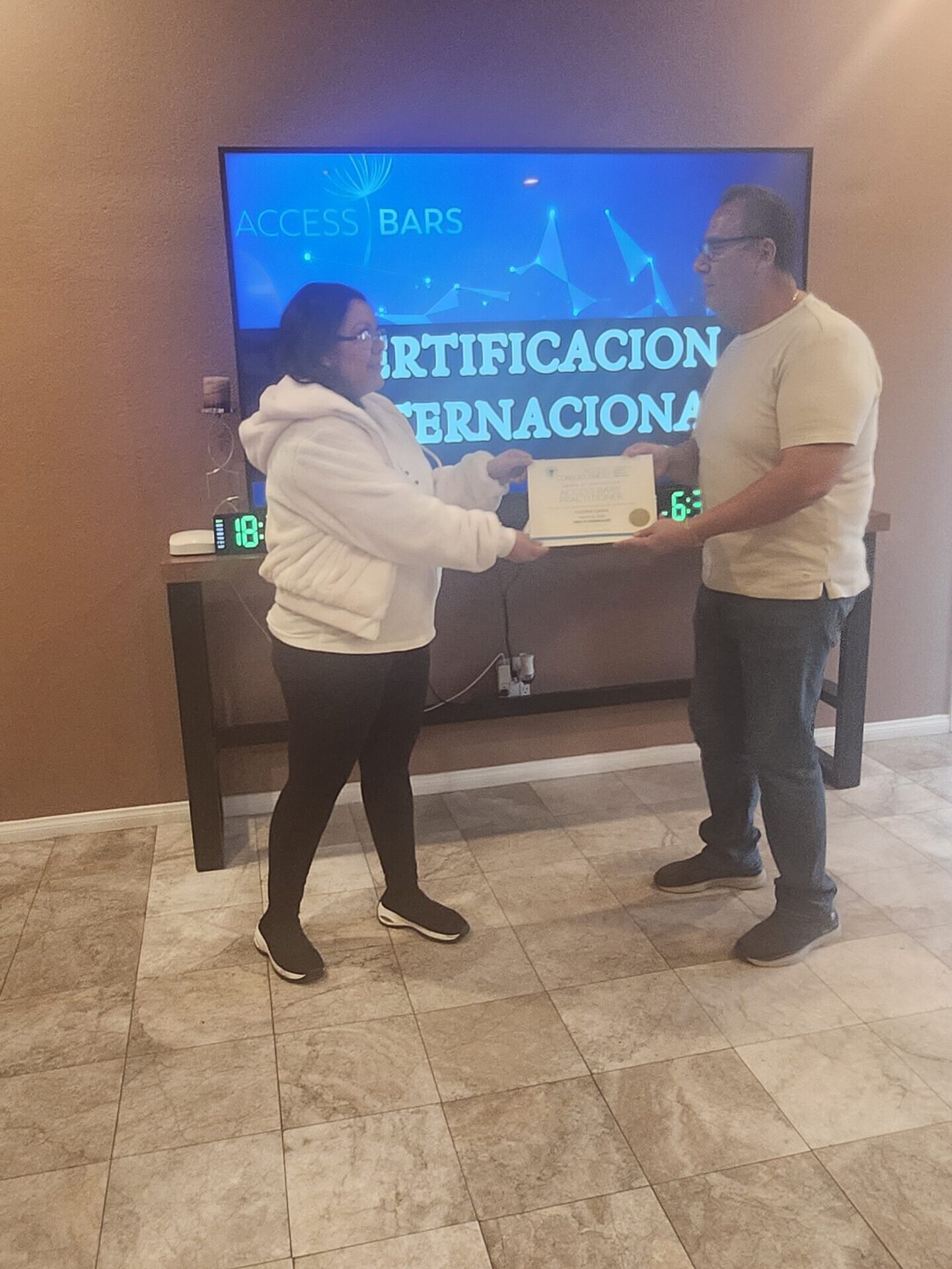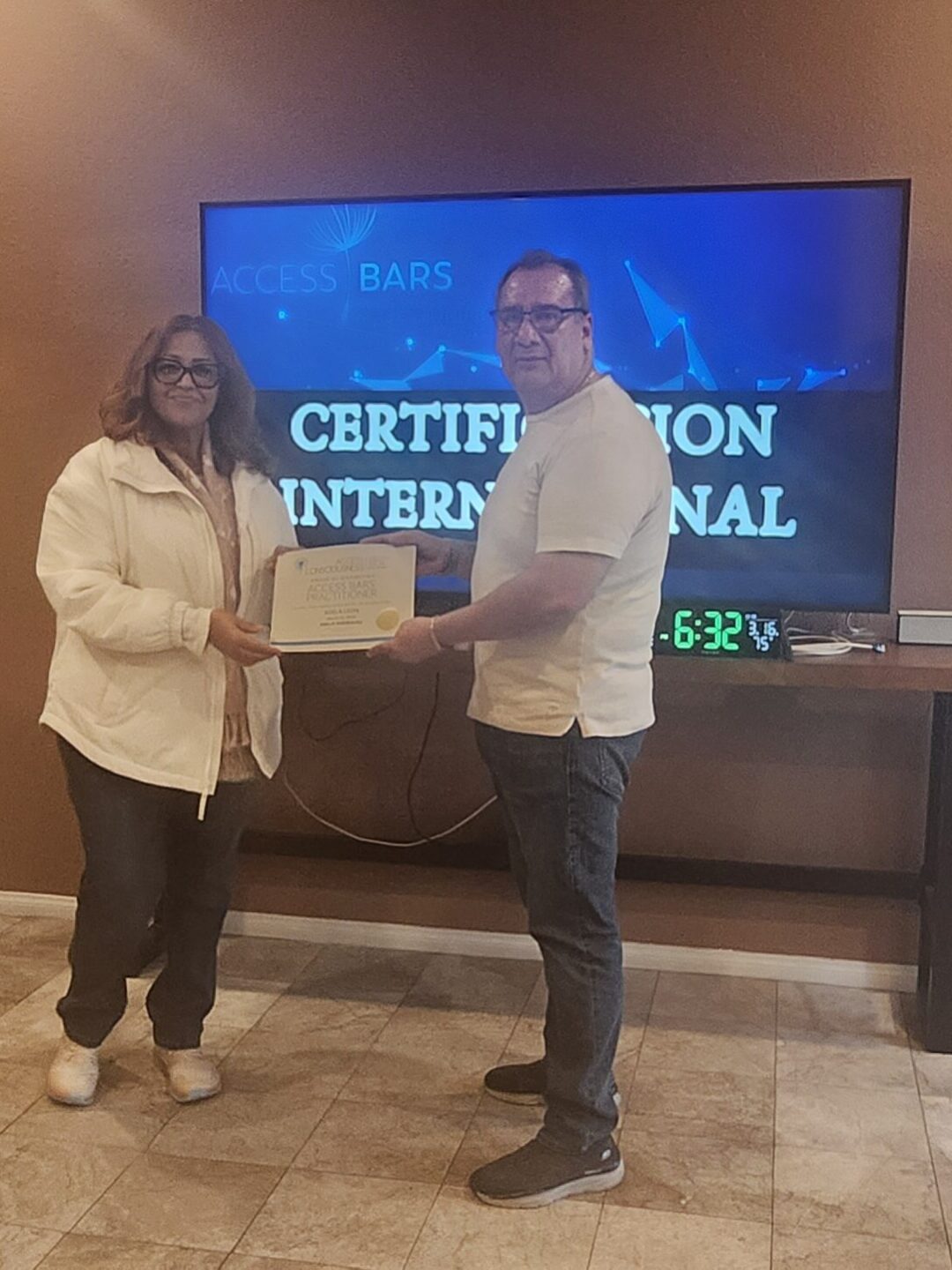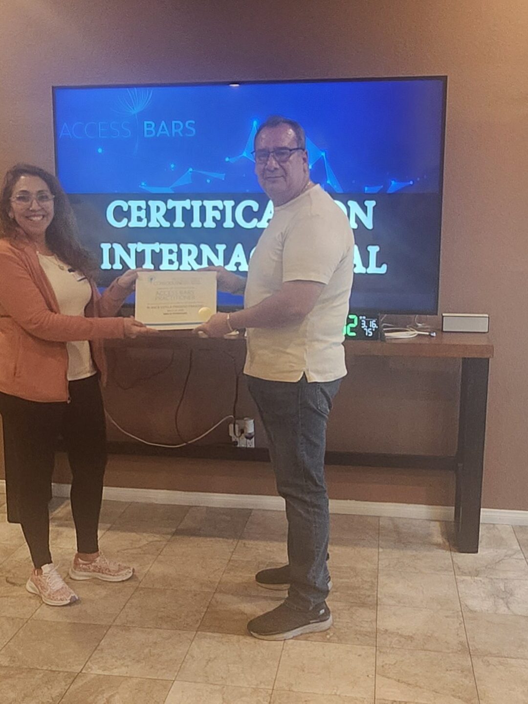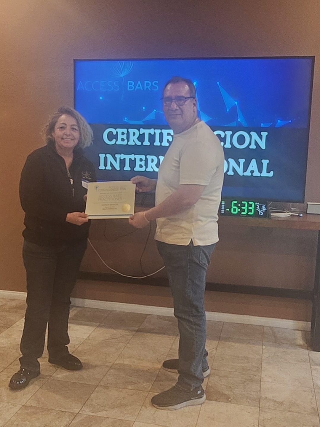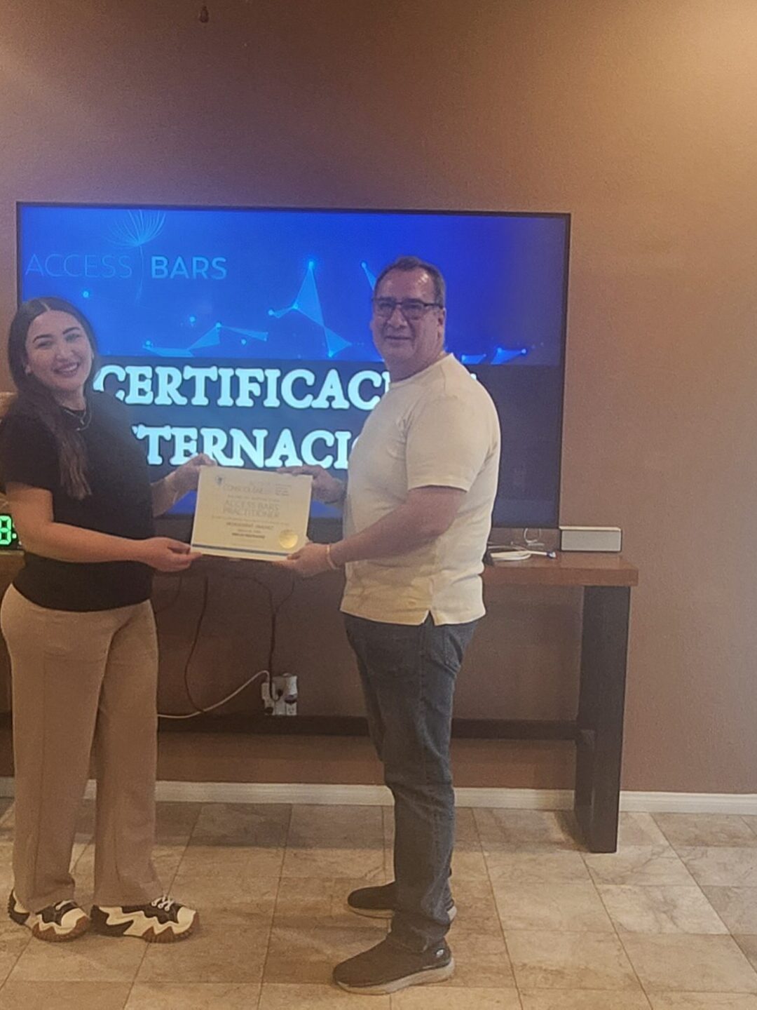 Conviértete en un practicante certificado de Barras de Access® a través de nuestros cursos intensivos. Aprenderás la técnica para activar los 32 puntos energéticos en la cabeza que ayudan a liberar bloqueos y mejorar el bienestar. Al completar el curso, recibirás una certificación oficial reconocida internacionalmente.